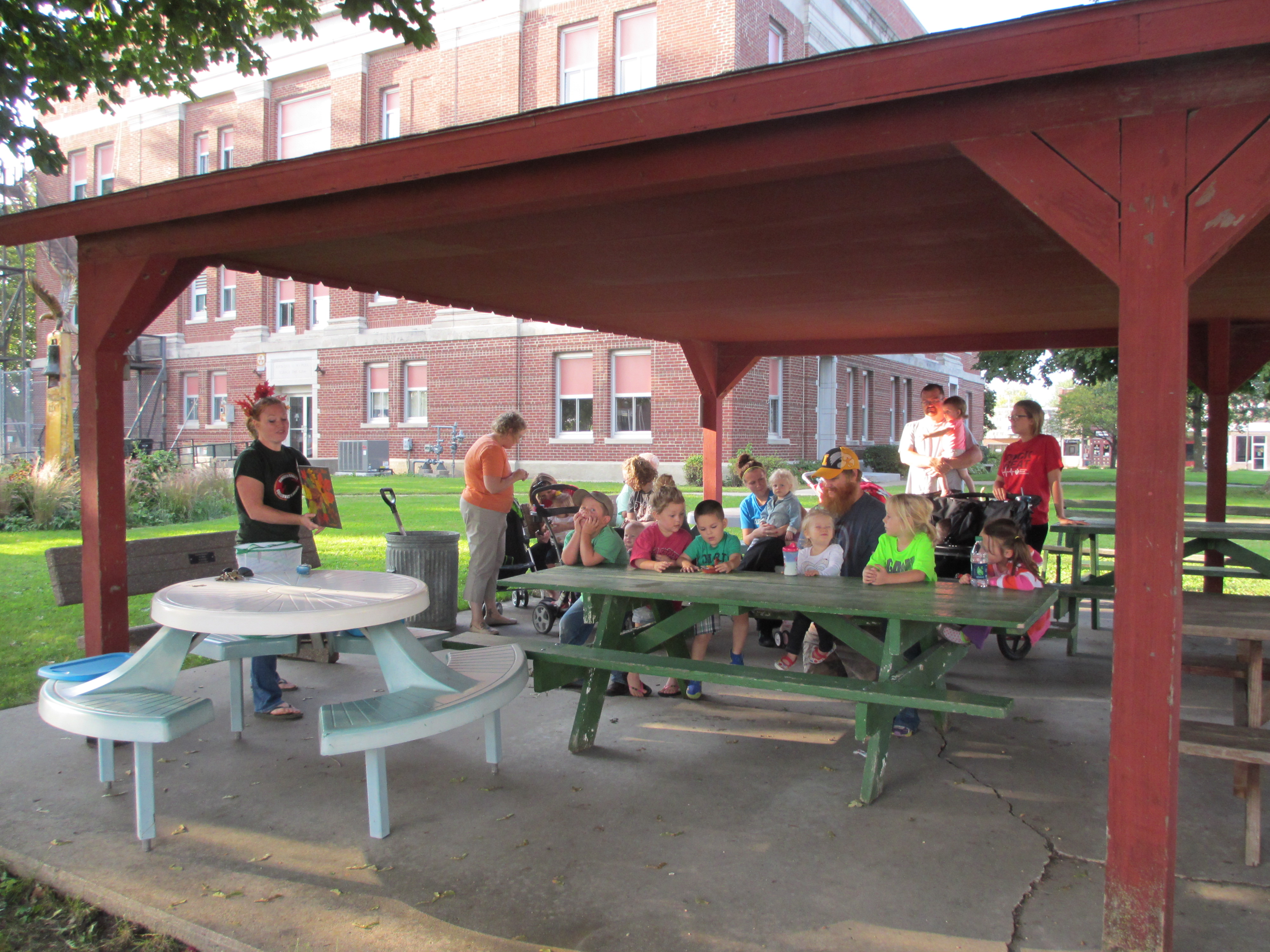 The “Roll and Read” event sponsored by Ringgold County Parents as Teachers was held September 18 at 5:30 PM at the shelter house in the courthouse yard in Mt. Ayr. Eight families with a total of 14 children participated in the event. The group logged a mile by walking or riding in strollers or wagons five laps around the courthouse square.